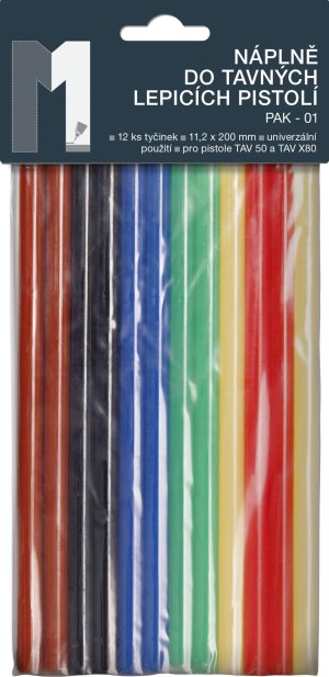 Popis: Náplne farebné veľké do tavných pištolí, obsah 12 ks.