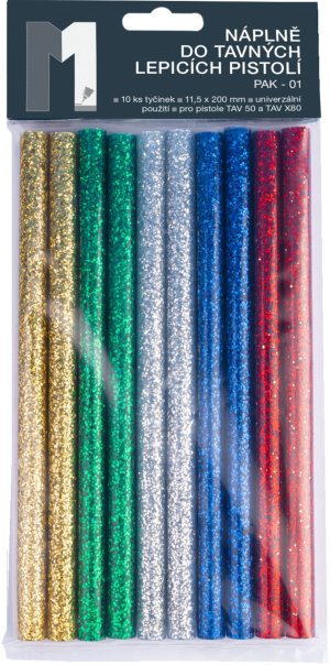 Popis: Náplne trblietavé do tavných pištolí, obsah 10 ks.