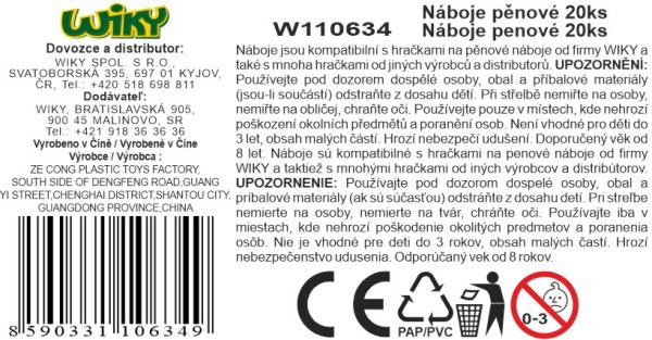 Penové náboje s pevným hrotom. Tieto penové náboje sú kompatibilné s pištoľami od ďalších výrobcov. Balenie obsahuje 20 ks.