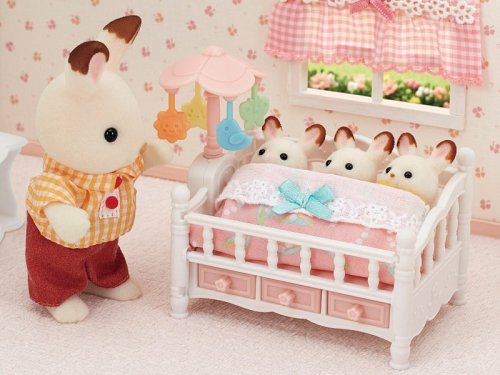 Táto rozkošná postieľka pre trojčiatka s otočným kolotočom sa môže rýchlo premeniť na posteľ pre väčšie deti. V spodnej časti postele sú tri šuplíčky na uloženie náhradných prikrývok a obliečky. Otočením kvety na boku postieľky rozpohybujte detský kolotoč. Užite si viac zábavy s ďalšími figúrkami a doplnkami Sylvanian Families (predáva sa samostatne). Herné sady a figúrky Sylvanian Families sú nadčasové a vysoko kvalitné hračky. Hra podnecuje predstavivosť dieťaťa. Sada obsahuje: 1x postieľka, 3x šuplíčky, 1x otočný kolotoč, 1x prikrývka. Vek: 3+