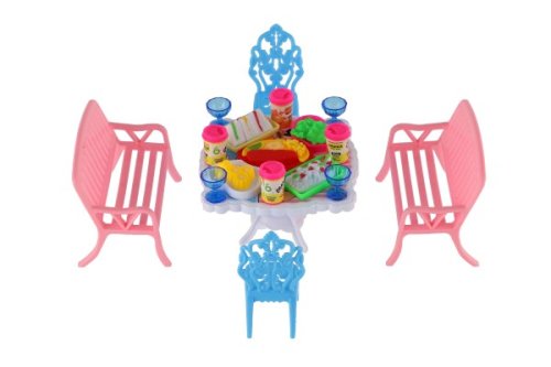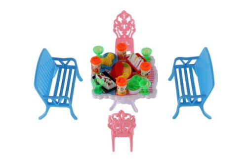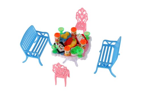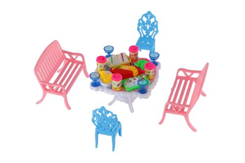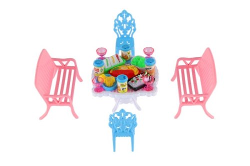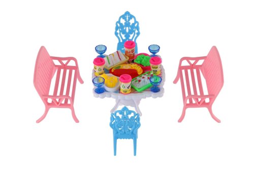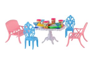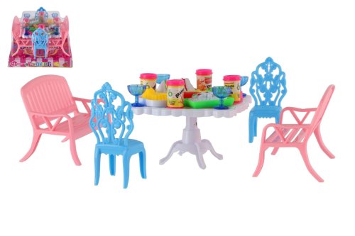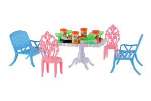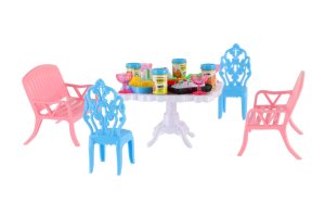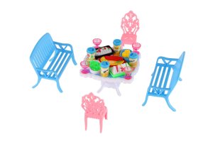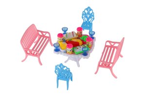 Potrebujete Vašim bábikám spríjemniť sedenie pred domčekom? V tom prípade je táto sada presne pre Vás. Dve lavičky, dve stoličky, stôl a doplnky v podobne pohostení na stôl bude určite obľúbenou časť obydlia pre bábiky. Rozmer balenia: 14 x 11 x 16 cm Vhodné pre deti od 3 rokov