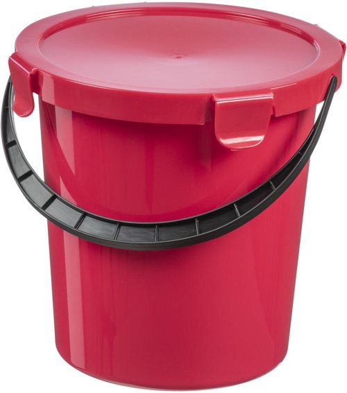 - štyri háčiky na bokoch pre zaistenie veka, tak aby obsah vedra zostal zaistený aj pri hrboľatej jazde autom