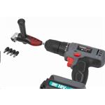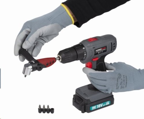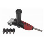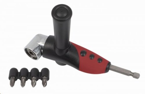 Umiestnite tento uhlový držiak bitov na vŕtačku / skrutkovač a utiahnite a povoľte skrutky a matice na takmer nedostupných miestach av uhloch 90° . Hodí sa pre všetky štandardné vŕtačky / skrutkovače .