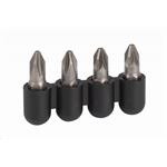 Ú hlový držiak bitov KRT063700 je dodávaný s dvoma bitmi PH2 a dvoma bitmi PZ2 z CRV ocele a adaptérom 1". Súčasťou balenia je aj prídavné držadlo pre ľahšiu prácu.