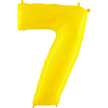 Žltý balónik číslo 7. Balónik je vyrobený z pevnej fólie.
