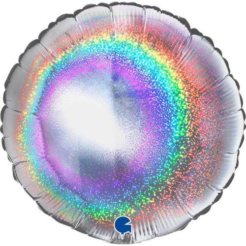 Nafukovací balónik okrúhly 46cm holografický s glitrami strieborný - Grabo