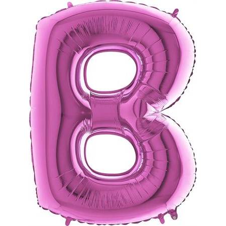 Ružový balónik písmeno B. Balónik je vyrobený z pevnej fólie.