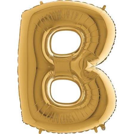 Zlatý balónik písmeno B. Balónik je vyrobený z pevnej fólie.