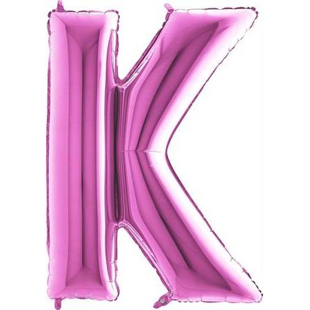 Ružový balónik písmeno K. Balónik je vyrobený z pevnej fólie.