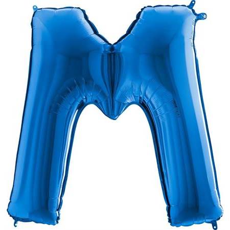 Modrý balónik písmeno M. Balónik je vyrobený z pevnej fólie.