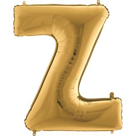 Zlatý balónik písmeno Z. Balónik je vyrobený z pevnej fólie.