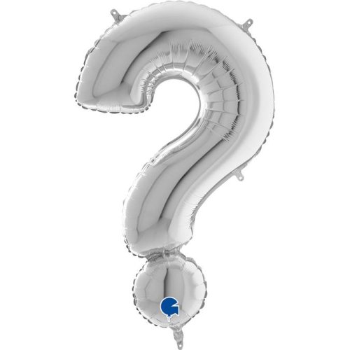 Fóliový balónik v tvare strieborného otáznika. Veľkosť 102 cm.
