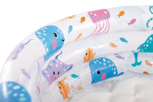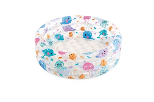 Detský nafukovací bazén. Bazén má tri komory. Nafukovací bazénik môžete veľmi jednoducho nafúknuť a postaviť takmer kdekoľvek. Kapacita vody (28l) do 14 cm výšky steny. Rozmer 61 x 22 cm. Vhodné od 1 do 3 rokov.