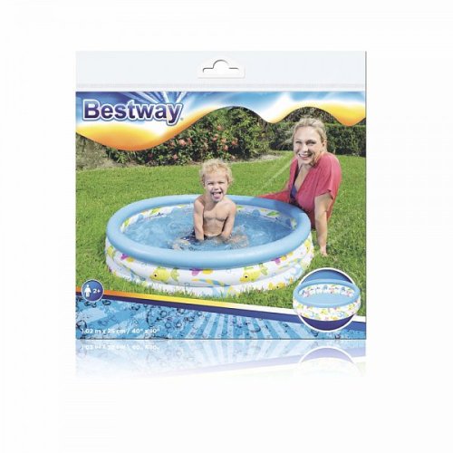 V horúcich letných dňoch nie je pre vaše najmenšie lepšie osvieženie, než v nafukovacom bazéniku! Bazénik je vhodný ako bazénik. Trojkomorový nafukovací bazén s potlačou motívu oceánu. Rozmer: 102 x 25 cm. Objem: 101 l. Vek: 2+.