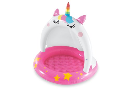 Nafukovací bazénik s objemom 45l vody so strieškou. Veľkosť bazéna približne 102×102cm. Nafukovacia podlaha. Vyrobené z testovaného masívneho vinylu. Súčasťou balenia je opravná sada.