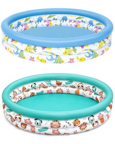 V horúcich letných dňoch nie je pre vaše najmenšie lepšie osvieženie, než v nafukovacom bazéniku! Bazénik je vhodný ako bazénik. Trojkomorový nafukovací bazén s roztomilými motívmi. Bazénik je vyrobený z kvalitného PVC o hrúbke 0,19 mm. Obsah: 1x bazén, 1x záplata na opravy. Assort je náhodný mix modelov. Výber nie je možné ovplyvniť. Rozmery nafúknutého bazénika: 122 x 25 cm. Rozmery nenafúknutého bazénika: 112x112 cm. Rozmery balenia: 27,5 x 28 x 3,3 cm. Objem bazénika: 140 l. Používajte iba pod dohľadom dospelej osoby. Vek: 2+