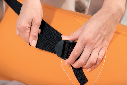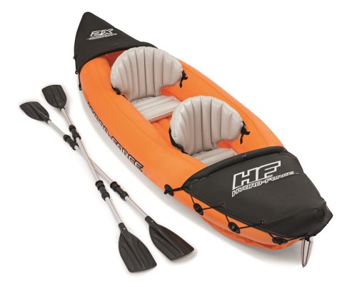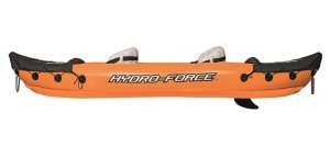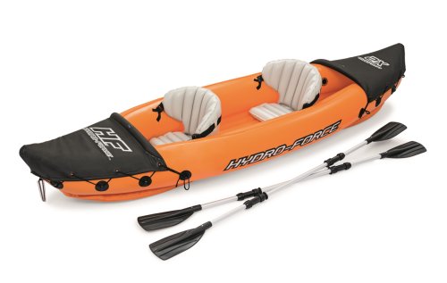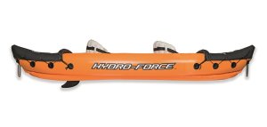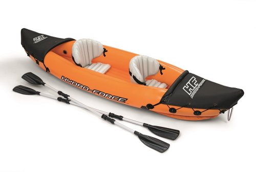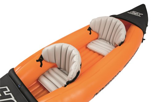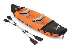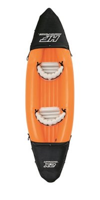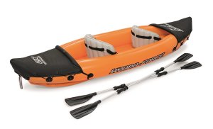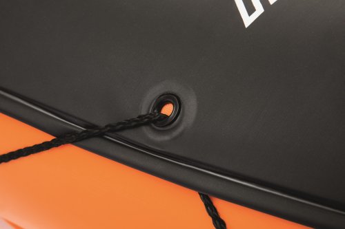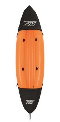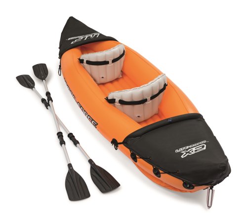 Modrý kajak X2 priamo vyzýva na dobrodružstvo! Kajak je vyrobený z odolného a testovaného vinylu o hrúbke 0,57 mm. Je vybavený rýchloupínacími ventilmi, bezpečnostným ventilom, vypúšťacím ventilom a lanom so vstavanými priechodkami po obvode. Tvar konštrukcie zabraňuje vstupu vody do kokpitu, ktorý je vybavený nafukovacími sedadlami. Čln je vybavený jednou odnímateľnou stredovou plutvou, ktorá pomáha udržať smer. Iste oceníte aj ďalšie praktické detaily, ako napríklad pevnej rukoväte a 2x obojstranné dvojplášťové veslá z hliníka (218 cm). Opravná sada je súčasťou balenia. Maximálna nosnosť: 160 kg (2 pasažieri). Váha: 13,9 kg. Rozmer: 321 x 88 x 42 cm.