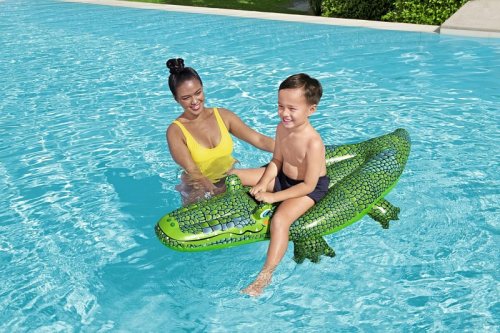 Veľký nafukovací krokodíl do vody je vhodný k moru, rybníku aj do bazéna. Realistická potlač. Stabilná konštrukcia a robustné plastové rukoväte vám pomôžu udržať väčšiu stabilitu. Dvojkomorový systém s bezpečnostnými ventilmi. V balení nájdete 1 ks opravnej záplaty. Rozmer: 152 x 71 cm. Vek: 3+ (určené pre 1 dieťa). Max. nosnosť: 45 kg. Použitie iba pod dohľadom dospelej osoby a vo vode, kde dieťa dosiahne na dno.