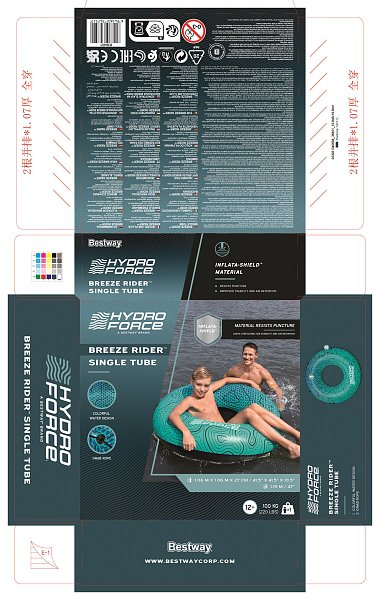 Bestway® Hydro-Force™ Nafukovací kruh Breeze Rider™ umožní malým aj väčším plavcom užiť si zábavu vo vode. Vyrobený je z veľmi kvalitného a odolného PVC materiálu a disponuje priemerom 119 cm. Plávací kruh Bestway je ideálnym doplnkom pre vodné aktivity detí i dospelých. Stačí si do neho sadnúť a nechať sa unášať vodou. Kruh má jednu vzduchovú komoru, poistné ventily a elastický popruh po polovici obvodu. Vrátane opravnej záplaty. Nafúknutá veľkosť kruhu: Ø 106 x 27 cm. Nenafúknutá veľkosť kruhu: Ø 119. Rozmery balenia: 19,8 x 19,8 x 6 cm. Určené pre 1 osobu. Maximálna nosnosť: 100 kg. Vek: 12+