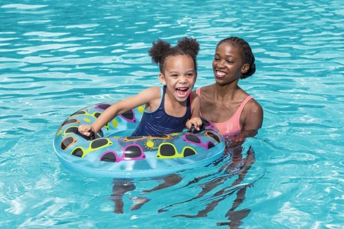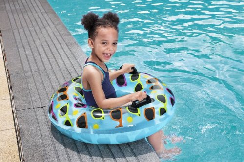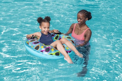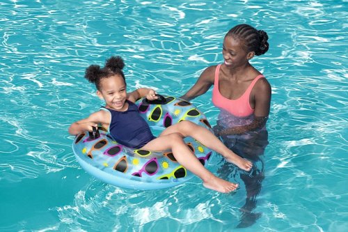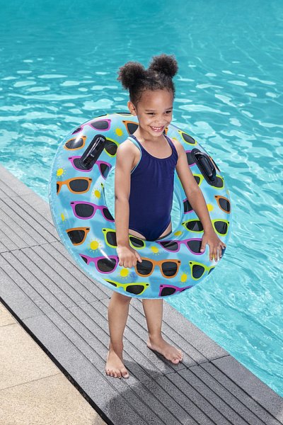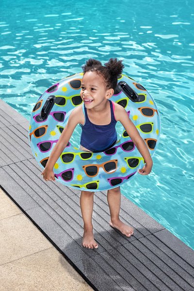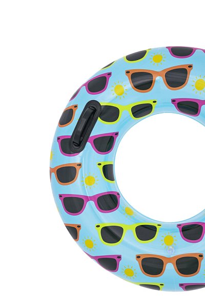 Bestway nafukovací kruh Designer s trendy farebnou potlačou slnečných okuliarov si deti zamilujú. Kruh má bezpečnostný ventil a je vyrobený z pevného a vopred otestovaného vinylu. Rozmer: 76 cm. Kruh sa ľahko nafukuje, vyfukuje a skladá. Odporúčaný vek: 3-6 rokov. Obsahuje: 1 nafukovací kruh. Užívanie vždy pod dohľadom dospelej osoby. Rozmer balenia: 17 x 29 x 1,2 cm.