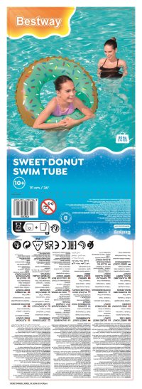 Nafukovací kruh s priemerom 91 cm je vyrobený z pevného a odolného vinylového materiálu. Kruh je k dispozícii vo veselom dizajne donutu. Maximálna nosnosť je 80 kg.