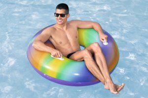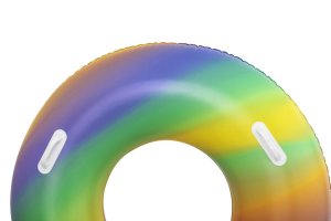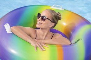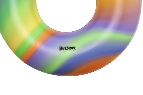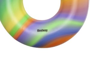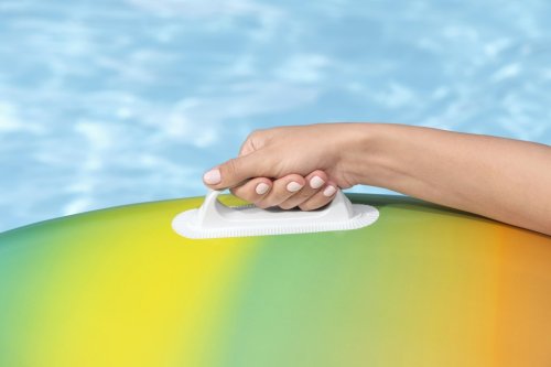 Nafukovací kruh vo veselom farebnom dizajne je vyrobený z pevného a odolného vinylového materiálu. Priemer kruhu je 1,19 m.