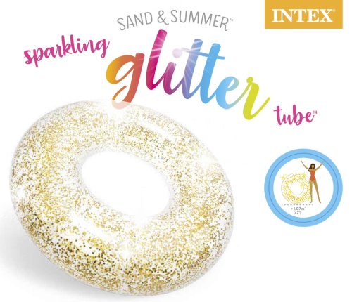 Nafukovací kruh s flitrami s priemerom 107 cm je vyrobený z kvalitného PVC materiálu. S touto vychytávkou zažiješ v mori alebo v bazéne zaručene ranec zábavy!