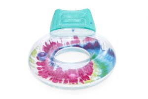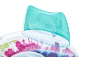 Bestway® plavecký kruh Tie Dye s opierkou hlavy. Vyrobený z veľmi odolného PVC materiálu a má 2 vzduchové komory. Kruh je vybavený operadlom, dvoma pevnými madlami a priestorom na fľašu alebo plechovku s vašim obľúbeným pitím. Vrátane opravnej záplaty. Maximálna nosnosť: 90 kg. Nafúknutá veľkosť kruhu: Ø 104 x 57 cm. Nenafúknutá veľkosť kruhu: 118 x 117 cm. Rozmery balenia: 24 x24 x 10 cm.