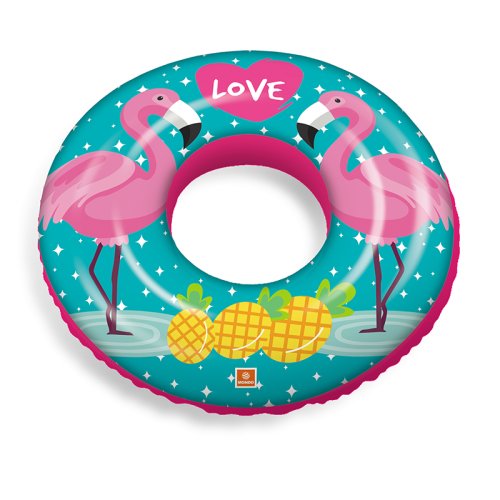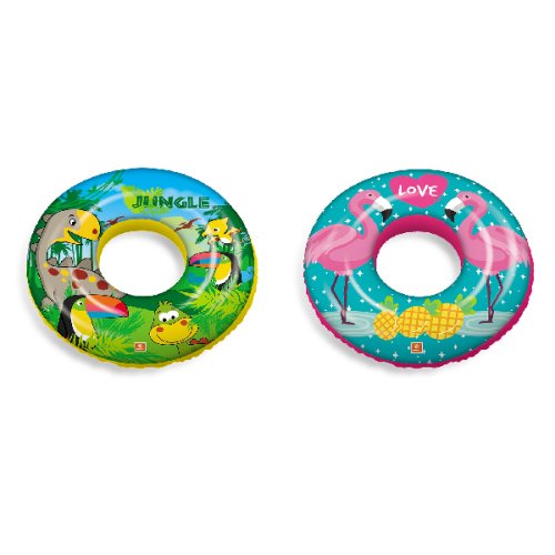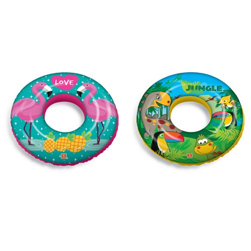 Nafukovací kruh do vody s motívom plameniak a džungle by ti v lete nemal chýbať nielen na dovolenke, ale ani na kúpalisku! Kruh s priemerom 50 cm je vyrobený z kvalitného PVC materiálu. Vyber si jeden z variantov.