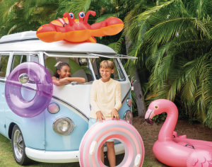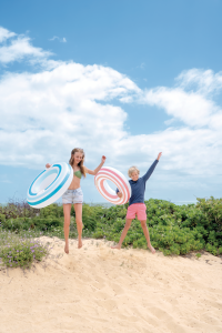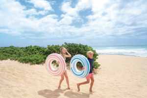 Veľký nafukovací kruh s pevnými madlami pre deti od 9 rokov s pruhmi.