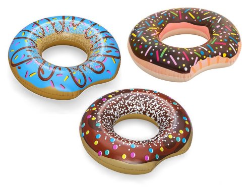 Nafukovací kruh s priemerom 107 cm je vyrobený z pevného a odolného vinylového materiálu. Kruh je k dispozícii v dvoch veselých designoch donutu. Maximálna nosnosť je 100 kg.
