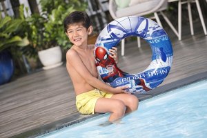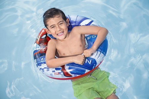 Bestway® Detský nafukovací kruh Spider-Man™ je skvelou plaveckou pomôckou pre deti vo veku 3-6 rokov. Vďaka atraktívnemu dizajnu Spider-Man™ si ho deti okamžite zamilujú a získajú väčšiu istotu pri prvých hrách a pokusoch o plávanie vo vode. Kruh je vyrobený z odolného PVC materiálu a využíva technológiu Color Shield™, ktorá pomáha chrániť farby pred vyblednutím. Bezpečnostný ventil zabraňuje úniku vzduchu a zaisťuje bezpečné používanie.