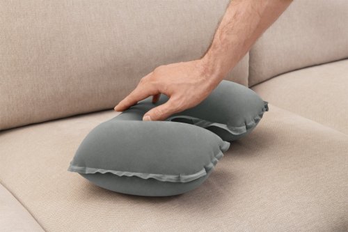 Nafukovací vankúš o veľkosti 37cm x 24cm x 10cm. Dve farebné prevedenia.