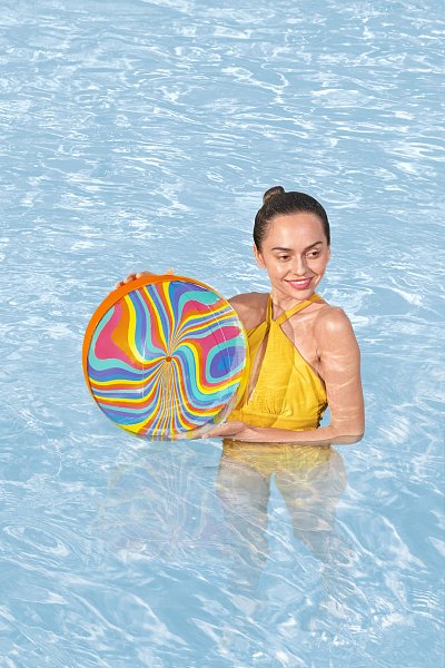 Originálna, nafukovacia lopta Bestway do vody s motívom Tie-Dye Twist™ a jednou transparentnou polovicou Ø 34 cm. Urobte sebe a svojim deťom radosť a užite si vo vode veľa zábavy. Vyrobené z kvalitného a odolného PVC. Používajte iba pod dohľadom dospelej osoby a vo vode, kde dieťa dosiahne na dno. Rozmery nafúknutej lopty: Ø 34 cm. Rozmery nenafúknutej lopty: 46 x 34 cm. Rozmery balenia: 29 x 17 x 1,7 cm. Vek: 2+