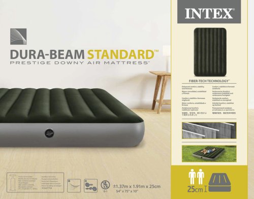 Nafukovacia posteľ s veľkosťou 1,37 cm x 1,91 mx 25 cm. Maximálna nosnosť 272 kg. Čas nafúknutia je 3,5 minúty.