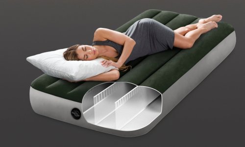 Nafukovacia posteľ s veľkosťou 76 cm x 1,91 mx 25 cm. Maximálna nosnosť 136 kg. Čas nafúknutia je 2,5 minúty.