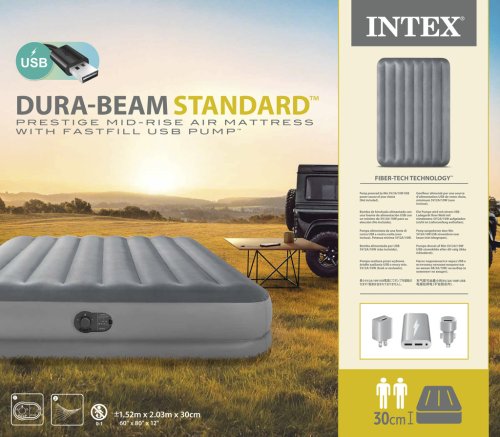 Nafukovacia posteľ o veľkosti 152 cm x 203 cm x 30 cm. Maximálna nosnosť 272 kg. Čas nafúknutia je 5,5 minúty. Jednoduché nafukovanie, vyfukovanie a uskladnenie. Zabudovaná elektrická pumpa.