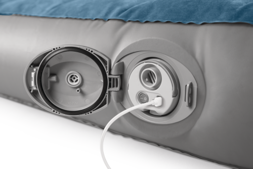 Výnimočnou súčasťou tohto produktu je dobíjacia multifunkčná pumpa, ktorá je súčasťou balenia. Pumpa je kompaktná a ľahko sa zasunie do ventilu postele. Je možné ju napájať cez USB kábel pripojený k adaptéru s výstupom 5V/1A alebo vyšším. Pumpa sa automaticky vypne po ôsmich minútach prevádzky a vďaka dvom rôznym násadcom je možné nafúknuť nielen posteľ, ale aj iné nafukovacie výrobky. V prípade vybitia batérie je možné posteľ dofúknuť manuálne cez ventil. Súčasťou pumpy je aj lítium-iónová batéria, ktorú je možné nabiť za tri hodiny.