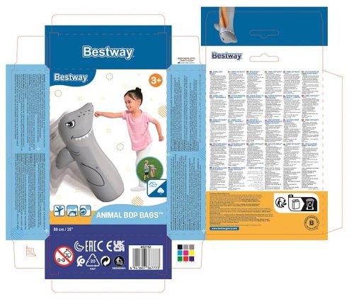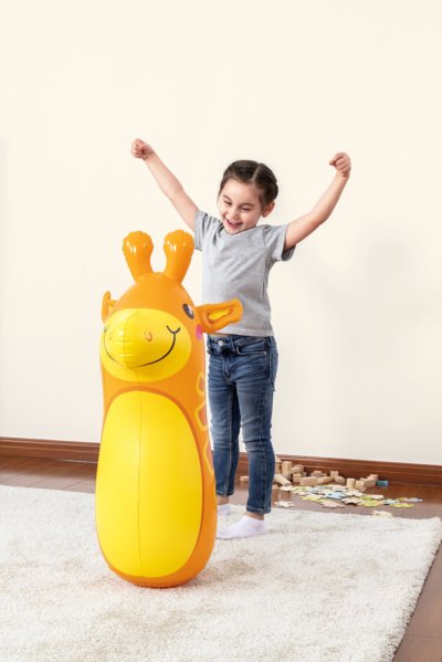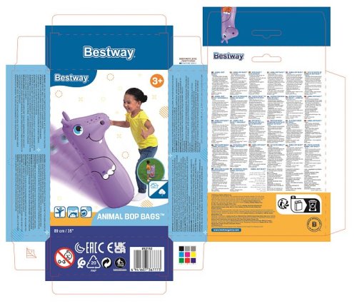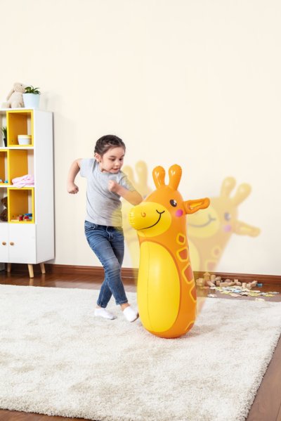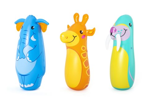 Nafukovacie boxovacie vrece v tvare zvieratka – to je správna voľba pre vašich malých boxerov. Pomáha deťom odreagovať sa a vybiť energiu. Deti si môžu vybrať z niekoľkých zvieracích designov. V spodnej časti boxovacieho vreca je vstavaná vodná komora, ktorá ho zaťaží a zaistí stabilitu. Assort je náhodný mix modelov. Výber nie je možné ovplyvniť. Výška boxovacieho vreca: 89 cm. Rozmer balenia: 19 x 12 x 4 cm. Vek: 3+