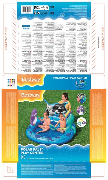 Bestway® vodné herné centrum Polar Pals™. Ponorte sa do osviežujúcej Antarktídy s vodným herným centrom Bestway® Polar Pals™! Toto hravé vodné centrum, ideálne pre deti od 2 rokov, sľubuje hodiny vodnej zábavy v roztomilom antarktickom téme. Roh narvala a tuleňov nos slúži ako zábavná hra s hádzaním krúžkov, kde môžu malí dobrodruhovia vyskúšať svoje schopnosti. Kreatívnu zábavu navyše zaistia 2 penové rybičky. Deti sa môžu hrať s rybkami alebo ich vložiť tučniakovi do papule a obohatiť tak zábavu. Priestor bazéna ponúka priestor pre vodné radovánky a je možné ho ľahko vypustiť pomocou integrovaného vypúšťacieho ventilu. S vodnou kapacitou 84 litrov je dostatok miesta na veselé špliechanie. Súčasťou: 3 krúžky v tvare ryby, 2 penové rybičky a opravná záplata. Vyrobené z odolného PVC. Poistné ventily. Nafúknutá veľkosť: 73 x 131 x 134 cm. Nenafúknutá veľkosť: 141,5 x 145,5 cm. Rozmery balenia: 30 x 30 x 6,5 cm. Určené pre 2 deti. Používajte iba pod dohľadom dospelej osoby. Vek: 2+