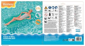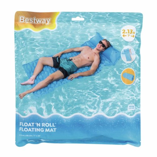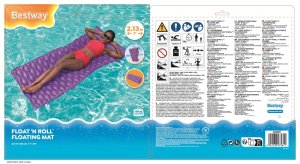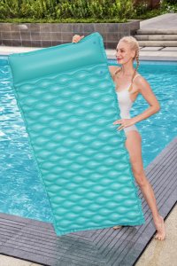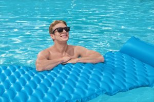 Nafukovacie lehátko 2,13 mx 86 cm. Lehátko je vyrobené z kvalitného vinylu s dvoma vzduchovými komorami av troch farbách. Maximálny váhový limit je 90 kg. Opravná záplata je súčasťou balenia.