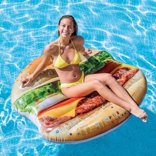 Nafukovacie lehátko Hamburger o veľkosti 145 x 142 cm. Opravná záplata priložená. Vyrobené z kvalitného vinylu. Dopraj si to pravé letné dobrodružstvo v mori alebo v bazéne!