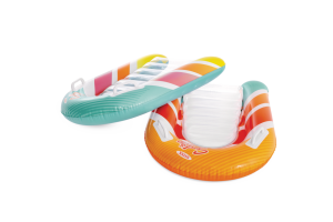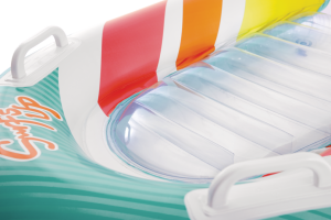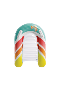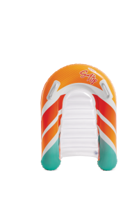 Nafukovacie lehátko s madlami Surf's Up Rider je navrhnuté pre deti od 6 rokov a ponúka pohodlný a bezpečný spôsob, ako si užiť vodné radovánky. Jeho konštrukcia kombinuje výrazné farebné pruhy v tónoch žltej, oranžovej, červenej a zelenej, ktoré dodávajú lehátku svieži a hravý vzhľad vhodný pre letné dni pri vode. Povrch lehátka je vyrobený z kvalitného PVC materiálu, ktorý je odolný a zároveň príjemný na dotyk. Sedacia časť je priehľadná, čo umožňuje deťom sledovať vodný svet pod sebou, čo zvyšuje zážitok z pobytu vo vode.