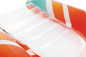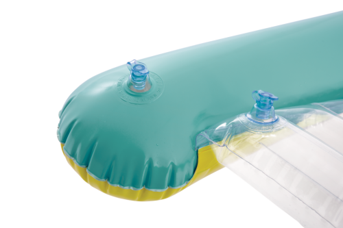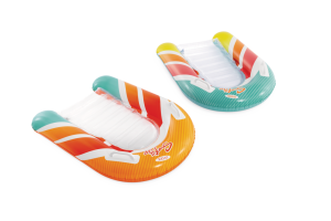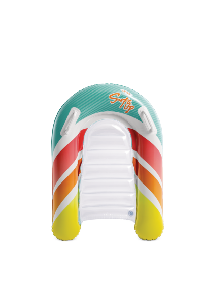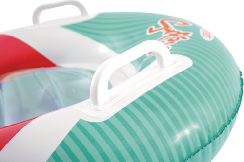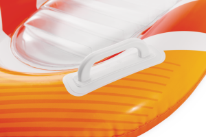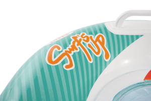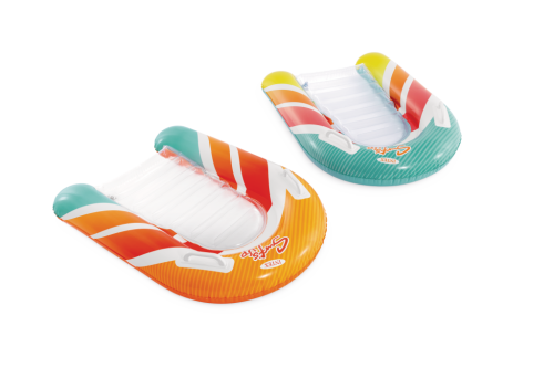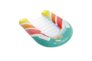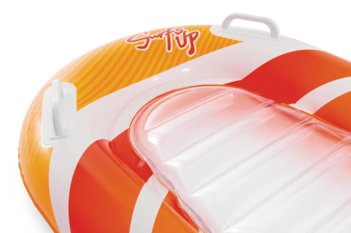 Sedacia plocha lehátka je nafukovacia a má ergonomický tvar s pozdĺžnymi vzduchovými komorami, ktoré zvyšujú komfort a umožňujú lepšie rozloženie váhy dieťaťa. Vďaka kombinácii pevnej a priehľadnej časti je lehátko nielen funkčné, ale aj vizuálne atraktívne. Produkt je dostupný v dvoch variantoch farebného prevedenia – s dominantnou zelenou alebo oranžovou farbou – čo umožňuje výber podľa osobných preferencií. Celkovo je Surf's Up Rider ideálnym doplnkom pre letné športové aktivity a zábavu vo vode, vhodný na vonkajšie použitie na bazénoch, jazerách či mori.