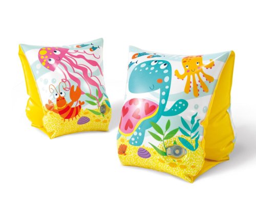 Nafukovacie rukávky pre neplavcov s pekným motívom morský svet. UPOZORNENIE: Používať iba vo vode také hĺbky, kde dieťa stačí, a iba pod dohľadom dospelej osoby. Veľkosť cca 23 x 15 cm.