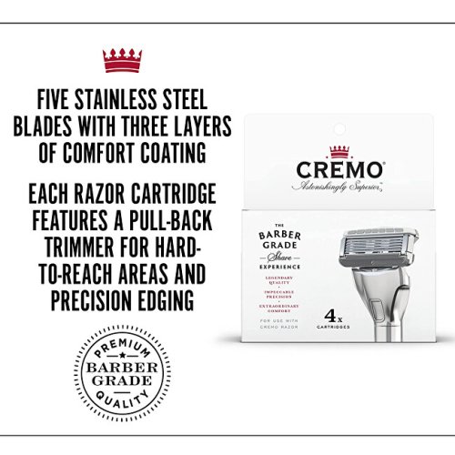 Päťbritové náhradné hlavice obsahujú legendárne lubrikačné zloženie holiaceho krému Cremo a potiahnutý ochranný prúžok na hladké a pohodlné oholenie.