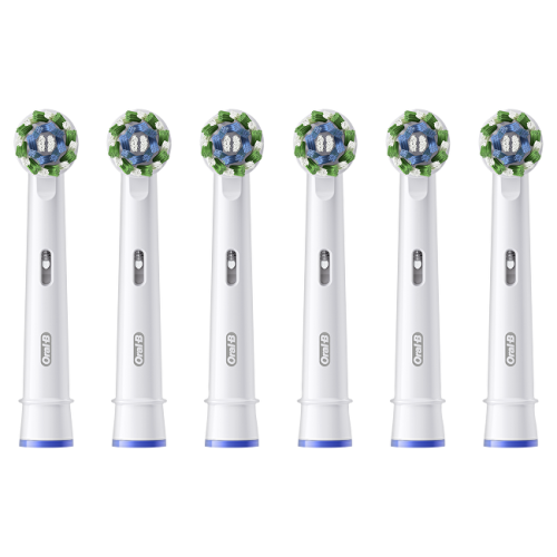 Kefková hlava Oral-B Pro Cross Action má viac ako 2200 dokonale skosených vlákien, ktoré v porovnaní s manuálnou zubnou kefkou odstraňujú až o 100% viac bakteriálneho zubného povlaku a zaisťujú čistejšie zuby a zdravšie ďasná. Originálne kefkové hlavy Oral-B sú navrhnuté s novými vláknami v tvare X, ktoré čistia v miestach, kam okrúhle hlavy nedosiahnu. Ukazovateľ opotrebenia kefkovej hlavy zmení vlákna zo zelenej farby na žltú a ukazuje tak, kedy je hlavu nutné vymeniť pre 100% účinnosť čistenia. Zaručená kompatibilita so všetkými dobíjacími zubnými kefkami Oral-B, s výnimkou zubných kefiek Pulsonic a iO.