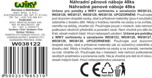 Náhradné penové náboje 48 ks. Rozmery 7x1,3 cm. Určené len pre položky W038123, W038126, W038127, W038129, W038130.