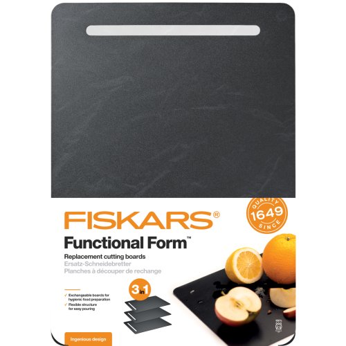 Tri náhradné plastové kuchynské dosky na doplnenie sady bambusových kuchynských dosiek. Výška: 0,45 cm, dĺžka: 34,6 cm, šírka: 25 cm. Hmotnosť: 0,387 kg. Pôvodné FIS číslo 1014213.