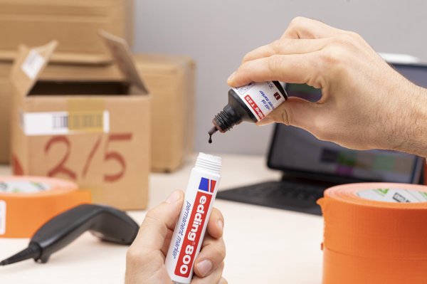 • Atrament je vhodný na doplnenie permanentných popisovačov Edding No. 1, 370, 390, 400, 500, 550, 800, 850, 2000, 2200 a tiež rady EcoLine 21, 22 a 25